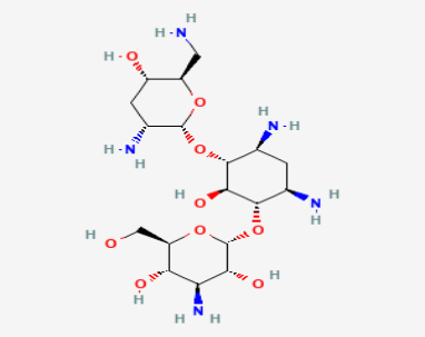 IUPAC Name: (2S,3R,4S,5S,6R)-4-amino-2-[(1S,2S,3R,4S,6R)-4,6-diamino-3-[(2R,3R,5S,6R)-3-amino-6-(aminomethyl)-5-hydroxyoxan-2-yl]oxy-2-hydroxycyclohexyl]oxy-6-(hydroxymethyl)oxane-3,5-diol