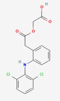 Aceclofenac– 2-[2-[2-(2,6-dichloroanilino)phenyl]acetyl]oxyacetic acid
