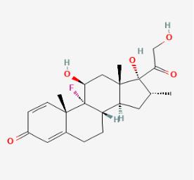 Dexamethasone: 9-fluoro-11,17-dihydroxy-17-(2-hydroxyacetyl)-10,13,16-trimethyl-6,7,8,11,12,14,15,16-octahydrocyclopenta[a]phenanthren-3-one