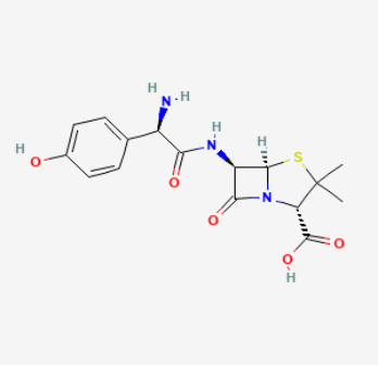 Amoxicillin: (2S,5R,6R)-6-[[(2R)-2-amino-2-(4-hydroxyphenyl)acetyl]amino]-3,3-dimethyl-7-oxo-4-thia-1-azabicyclo[3.2.0]heptane-2-carboxylic acid