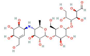 Acarbose – O-4,6-Dideoxy-4-[[(1S,4R,5S,6S)-4,5,6-trihydroxy-3-(hydroxymethyl)-2-cyclohexen-1-yl]amino]-α-D-glucopyranosyl-(1→4)-O-α-D-glucopyranosyl-(1→4)-D-glucopyranose