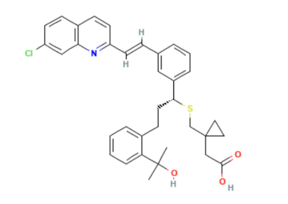 Montelukast- 2-[1-[[(1R)-1-[3-[(E)-2-(7-chloroquinolin-2-yl)ethenyl]phenyl]-3-[2-(2-hydroxypropan-2-yl)phenyl]propyl]sulfanylmethyl]cyclopropyl]acetic acid