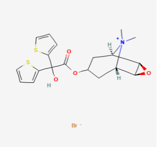 Tiotropium Bromide: [(1R,2R,4S,5S)-9,9-dimethyl-3-oxa-9-azoniatricyclo[3.3.1.0]nonan-7-yl] 2-hydroxy-2,2-dithiophen-2-ylacetate bromide