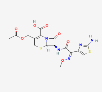 Cefotaxime: (6R,7R)-3-(acetyloxymethyl)-7-[[(2Z)-2-(2-amino-1,3-thiazol-4-yl)-2-methoxyiminoacetyl]amino]-8-oxo-5-thia-1-azabicyclo[4.2.0]oct-2-ene-2-carboxylic acid