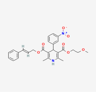 Cilnidipine: 3-O-(2-methoxyethyl) 5-O-[(E)-3-phenylprop-2-enyl] 2,6-dimethyl-4-(3-nitrophenyl)-1,4-dihydropyridine-3,5-dicarboxylate